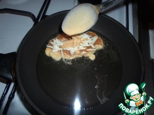 Этой же стороной выкладываем ее на разогретую с маслом сковороду.