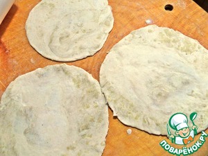 Теперь готовим шанежки. Отрезаем от теста по кусочку. Раскатываем круги размером с блюдце.