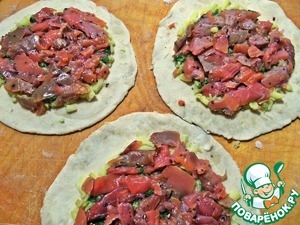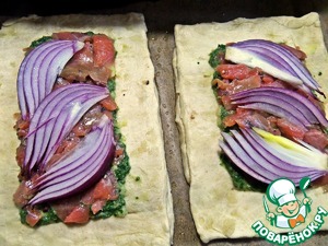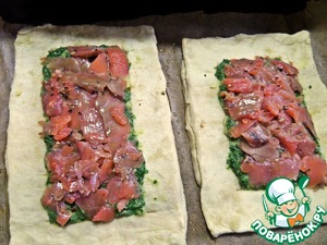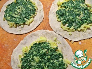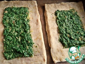 Намазываем по ложке шпинатной начинки.