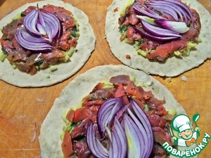 Нужна упаковка копчёного лосося (у меня с солью и лимонным перцем). Он уже нарезан маленькими кусочками.