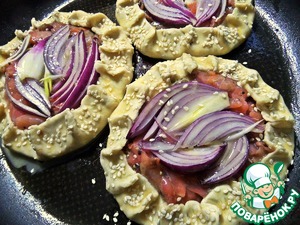 Защипать края, смазать их яйцом. Посыпать кунжутом.