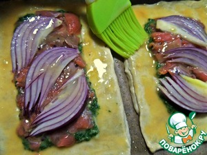 Смазываем взбитым яйцом тесто.