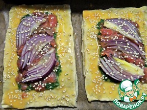 Посыпаем кунжутом. Ставим в духовку минут на 5.