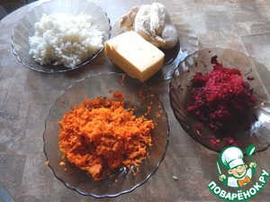 Предварительно отваренные овощи натереть на мелкую тёрку, рис ТМ"Мистраль" охладить и выложить из пакетика