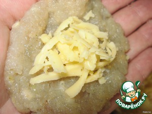 Сформировать из фарша лепешку, положить на середину сыр, сделать котлетку.