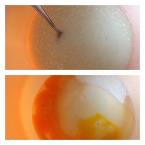 В набухшую манку влить яично-сахарную смесь и аккуратно перемешать лопаткой. Цедру апельсина натереть на мелкой терке, мякоть мелко нарезать или если хватит нервов лучше натереть на терке. Добавить и цедру, и мякоть и сок, который выделился с апельсина к манке. Перемешать. Добавить разрыхлитель и муку, перемешать лопаткой, не взбивать.