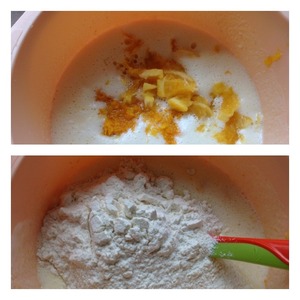 апельсин я не терла и не резала, а выжала сок на цитрусовой выжималке и остатки мякоти с выжималки добавила в тесто.