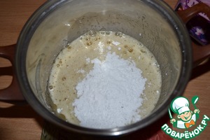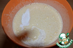 Добавьте в эту смесь муку, крахмал, можете так же добавить цедру лимона. Еще раз все хорошо взбейте.