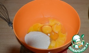 Соедините в кастрюле яйца и сахар, перемешайте. -