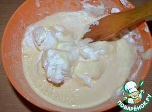 В другой чаше соедините оставшиеся яйца и ВСЕ желтки (3 шт).
