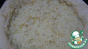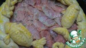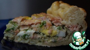Укладываю рыбку внахлест. Как бы скрепляю ею пирог.