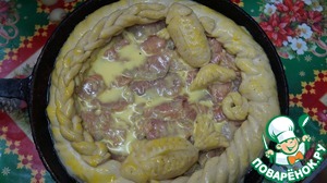 Большую часть выкладываю в форму (у меня старая добрая чугунная сковородка), а меньшую часть оставляю для украшения пирога.