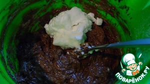 Продолжая взбивать добавляем какао, муку, разрыхлитель и цедру с половины апельсина, затем добавляем тыкву со всей жидкостью.