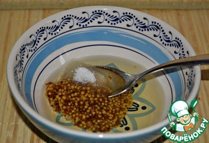 Нужна готовая зернистая горчица (Кюхе, Камис, Вкуснотека, Махеев...) Французская отлично подойдет. Если нет такой, можно заменить зернистую на обычную,1/2 ст. л.