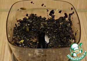 Для тапенада очищенный чеснок, маслины и каперсы измельчить в блендере.