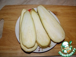 Баклажаны очистить, нарезать вдоль, ширина должна быть не тоньше 1 см! Посыпать их солью, и оставить минут на 20 постоять, чтобы не горчили.