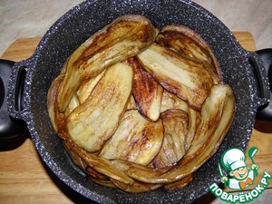 Подготовленные баклажаны уложить плотно, внахлест, на дно и стенки кастрюли, чтобы не было дырок.
