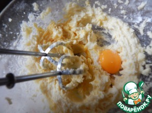 Отделить желтки от белков и вводим в смесь по одному желтку, постоянно перемешивая