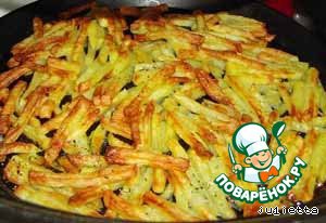 Картофель слегка посолить, сбрызнуть растительным маслом, пожарить (я жарила в конвекционной печи, там не требуется много масла. Вы можете пожарить удобным для вас способом). В конце жарки добавить специи или приправы по вкусу (у меня были сушеные прованские травы).