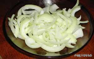 Лук порезать широкими полукольцами (мелкий лук - кольцами),