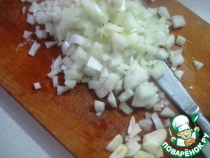 • Разогреть на сковороде растительное масло, обжарить лук до мягкости, добавить к нему чеснок и обжаривать вместе до золотистости.