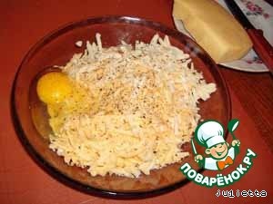 Натрите твердый сорт сыра (половину можно заменить творогом), добавьте яйцо, немного соли и перец, -
