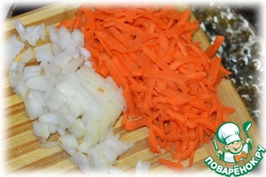 Лук нарезать кубиками, морковь натереть на крупной терке и