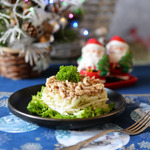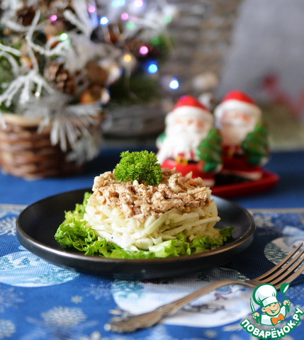 Этот салат приготовлен по мотивам известного с советских времен салата "Ташкент". Получился очень вкусный, с пикантной ноткой салат, свежесть и сочность маргеланской редьки, грибы и маринованное куриное филе, нежный майонез - попробуйте, это очень вкусно!