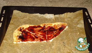 Раскатав тесто для пиццы, намазываем его варением и отправляем в духовку.