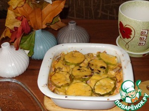 Сверху выкладываем кружки цуккини, запеченные на решётке или на сковороде-гриль.