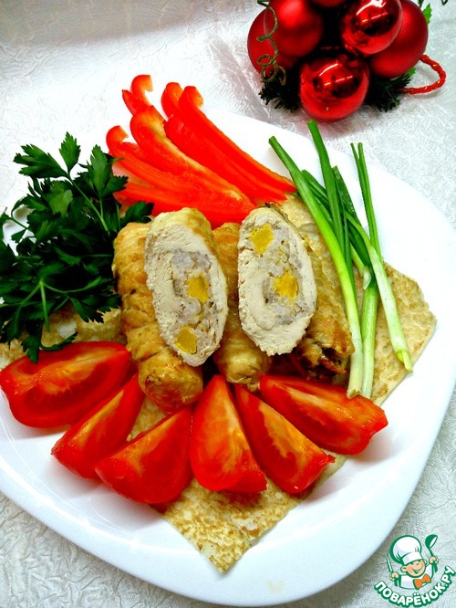 Куриные рулетики с рисом и хурмой