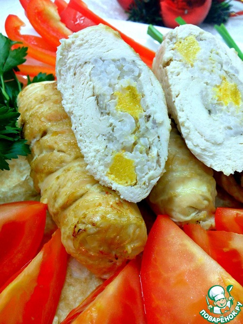 Рецепт «Куриные рулетики с рисом и хурмой»: