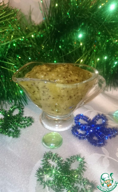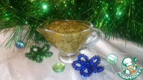 За это время в духовке (100 С) 5 минут стерилизуем баночки с крышками. Наливаем в баночку горячее ткемали и закрываем крышкой. Как баночки остынут, можно убирать в холодильник или прохладное помещение.