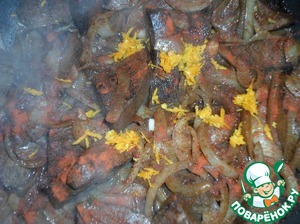Затем мандариновую цедру и паприку. Доводим блюдо до готовности.