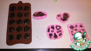 У меня осталась шоколадная масса, а формочки не хватило, поэтому я использовала силиконовые формы для мастики)