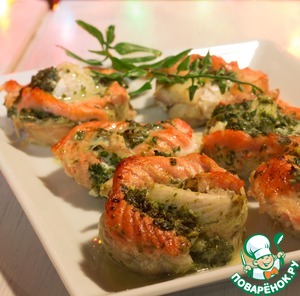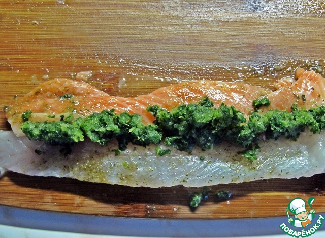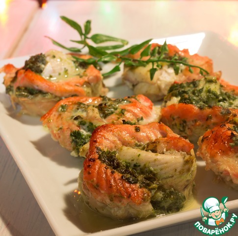 Рецепт «Розочки из рыбного филе со шпинатом»: