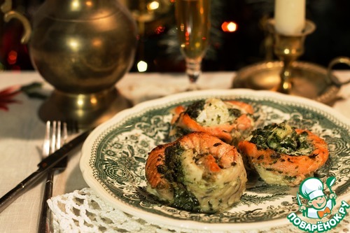 Очень нарядное блюдо для праздничного стола. Готовится очень быстро, съедается еще быстрее. Годится и в качестве закуски, и в качестве основного горячего блюда.