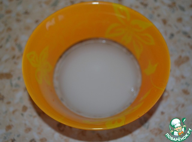 Крахмал развести водой, на 1 чайную ложку крахмала, без горки, 3 столовые ложки воды.