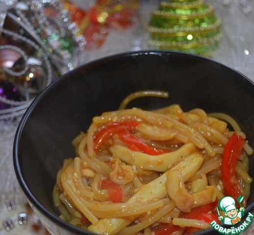 Этот рецепт для любителей пасты и морепродуктов! Готовить - одно удовольствие, быстро, просто и вкусно! В рецепте я использовала замороженные мидии и кальмары, их с лёгкостью можно заменить морским коктейлем, тогда блюдо получится ещё быстрее!))) Любителям китайской кухни, должно понравиться! Итак, переходим к приготовлению...