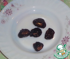 В каждый чернослив кладем кусочек шоколада. -