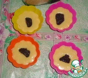 Кладем по 1 черносливу в каждую формочку с тестом.