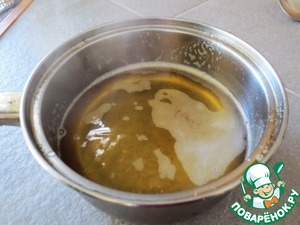 В маленькую кастрюлю налить воду, высыпать сахар, добавить мед и лимонный сок. Варим сироп на слабом огне, с момента закипания еще 3 минуты. -