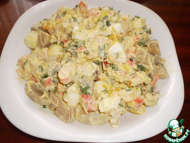 А еще мне очень нравится сочетание крабовых палочек с копченой колбасой (солями, сервелат)!
