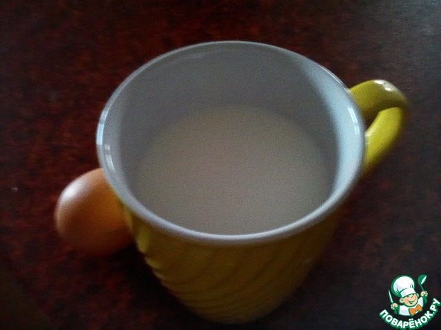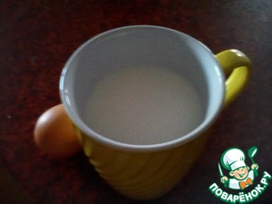 Добавляем тёплого молока почти чашку (как на картинке) и яйцо.