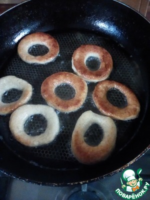 Наливаем масло в сковороду и на медленном огне жарим 1 мин. с одной стороны и 1 мин. с другой.