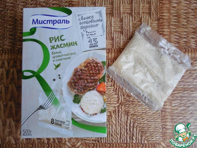 Для приготовления теста нужно сварить рис. Я взяла крупу в пакетиках для варки ТМ "Мистраль". Рис нужно варить 15 минут в подсоленной воде.