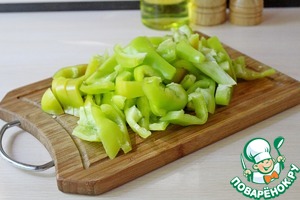 Обжарить на сильном огне 3-5 минут, на 2-3 ст. л. растительного масла, присолить, выложить к овощам.