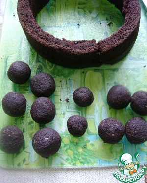 чуть подсушенную вырезанную серединку коржа раскрошить