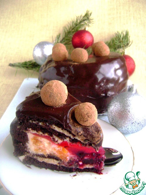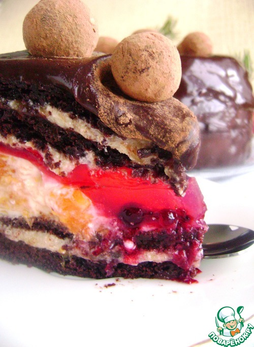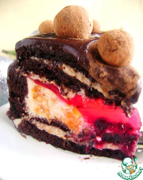 Рецепт «Торт фруктово-шоколадный с трюфельными шариками»: