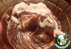 Вводим аккуратно треть белков в шоколадную смесь и вмешиваем в массу.